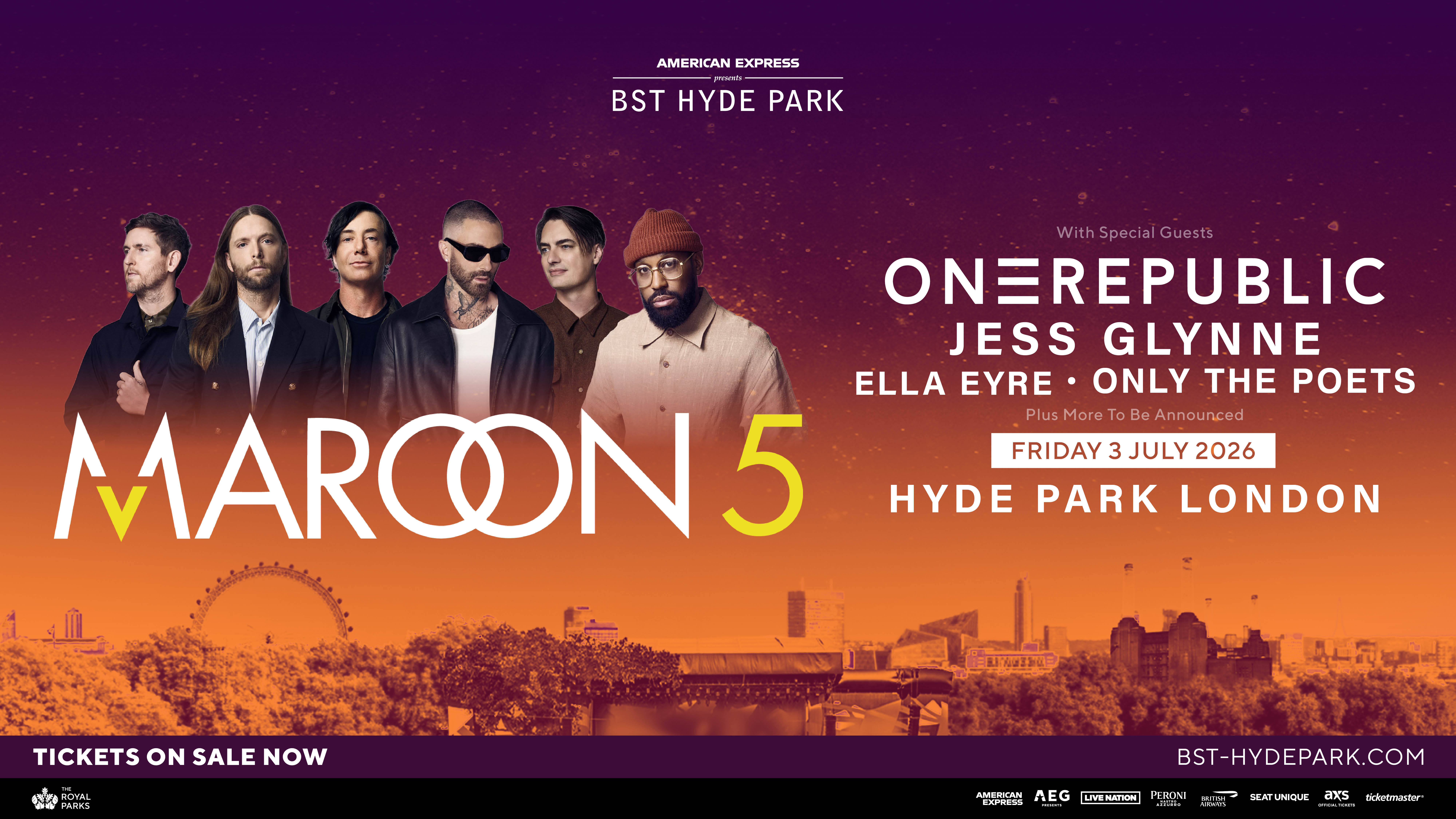 Don’t miss, Maroon 5, joined by very special guests, live in the UK in July 2026.