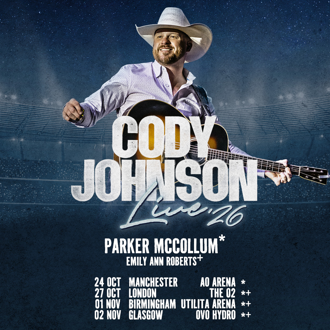 Special guest Parker McCollum will join Cody Johnson as main tour support, marking his highly anticipated first performances in the UK and Ireland. With his first four singles topping the charts and an impressive collection of awards already to his name, Parker has quickly risen to country‑music stardom, selling out arenas and major festivals worldwide.