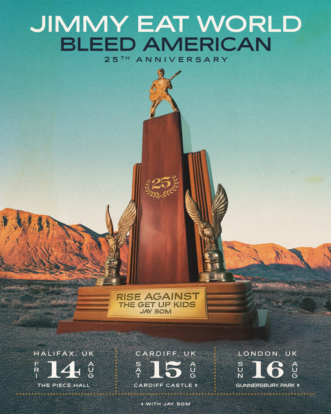 Jimmy Eat World will be joined by special guests Rise Against, The Get Up Kids and Jay Som.